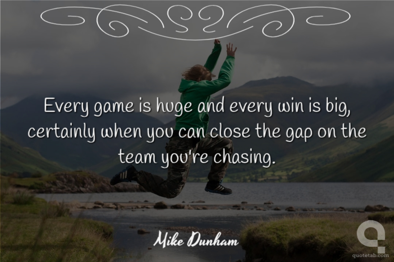 Every game is huge and every win is big, certainly when you can close the gap on the team you're chasing.