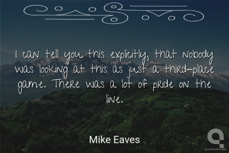 I can tell you this explicitly, that nobody was looking at this as just a third-place game. There was a lot of pride on the line.