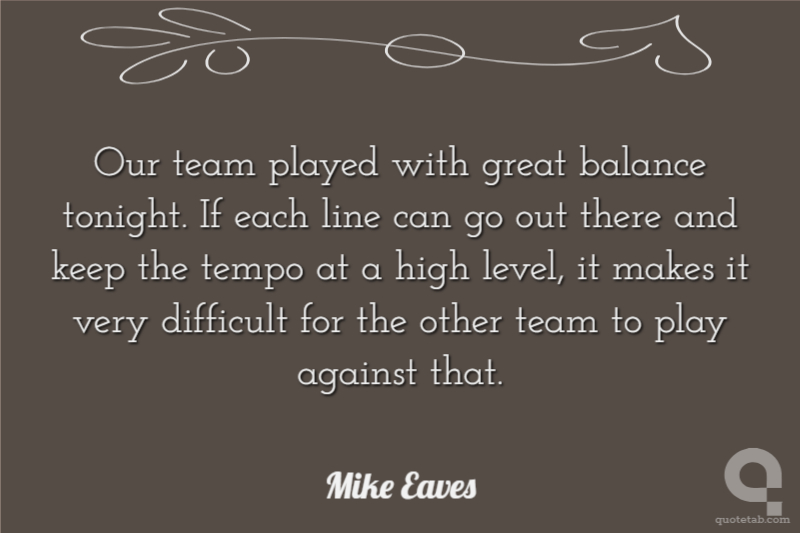 Our team played with great balance tonight. If each line can go out there and keep the tempo at a high level, it makes it very difficult for the other team to play against that.