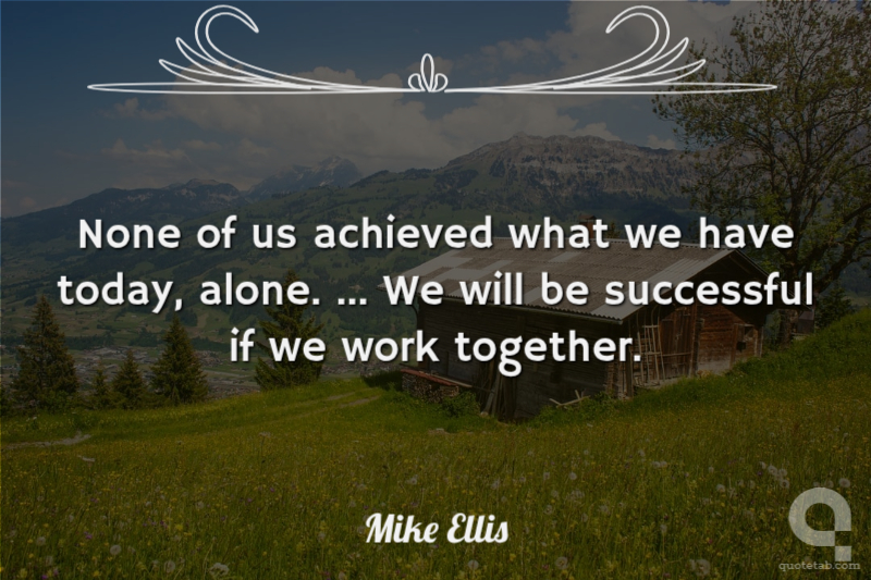 None of us achieved what we have today, alone. ... We will be successful if we work together.