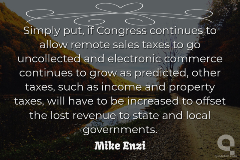Simply put, if Congress continues to allow remote sales taxes to go uncollected and electronic commerce continues to grow as predicted, other taxes, such as income and property taxes, will have to be increased to offset the lost revenue to state and local governments.