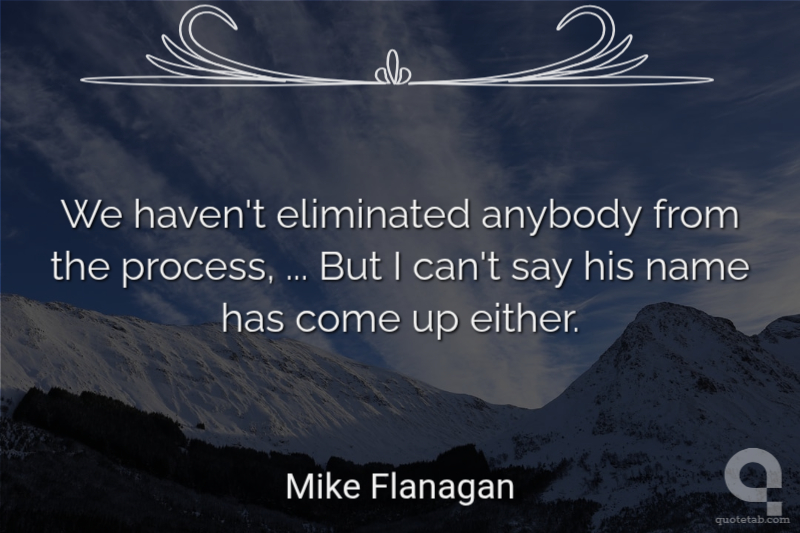 We haven't eliminated anybody from the process, ... But I can't say his name has come up either.