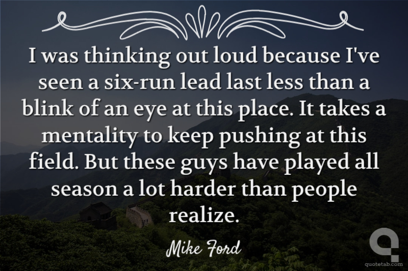 I was thinking out loud because I've seen a six-run lead last less than a blink of an eye at this place. It takes a mentality to keep pushing at this field. But these guys have played all season a lot harder than people realize.