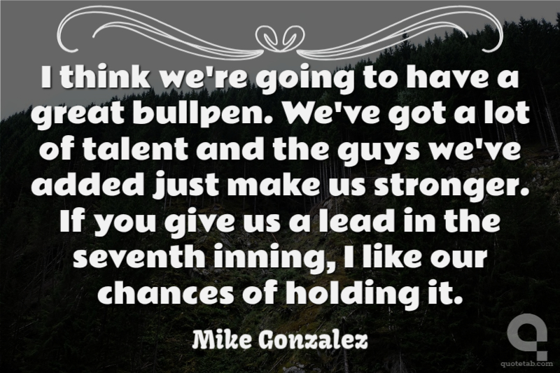 I think we're going to have a great bullpen. We've got a lot of talent and the guys we've added just make us stronger. If you give us a lead in the seventh inning, I like our chances of holding it.
