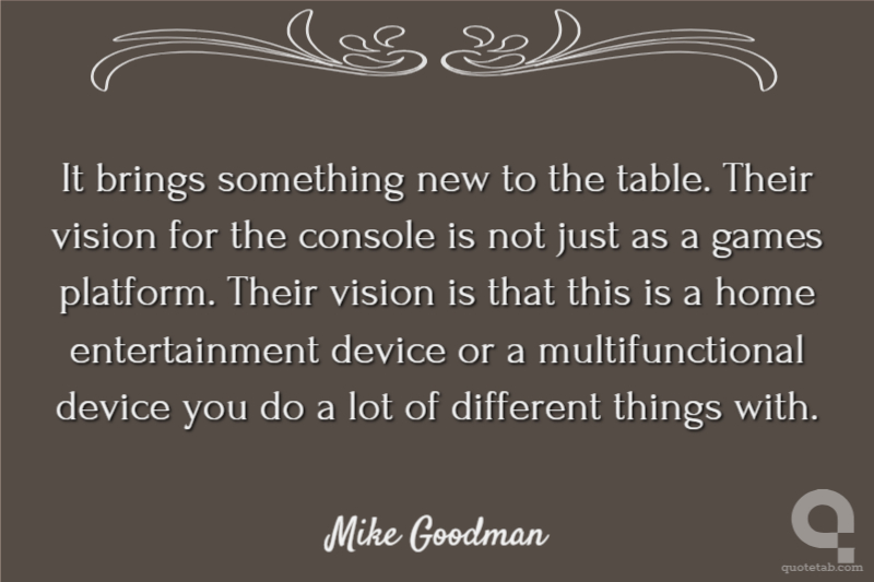 It brings something new to the table. Their vision for the console is not just as a games platform. Their vision is that this is a home entertainment device or a multifunctional device you do a lot of different things with.