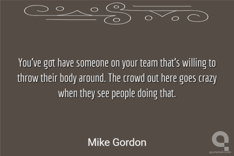You've got have someone on your team that's willing to throw their body around. The crowd out here goes crazy when they see people doing that.