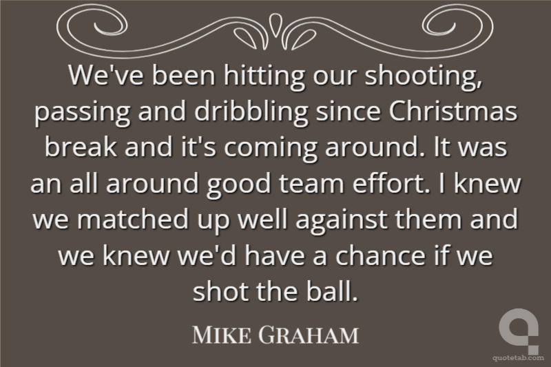 We've been hitting our shooting, passing and dribbling since Christmas break and it's coming around. It was an all around good team effort. I knew we matched up well against them and we knew we'd have a chance if we shot the ball.