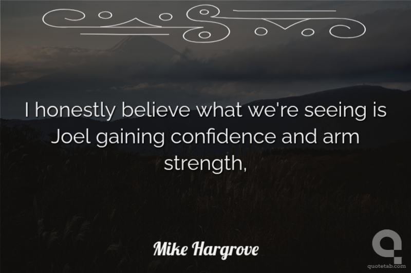 I honestly believe what we're seeing is Joel gaining confidence and arm strength,