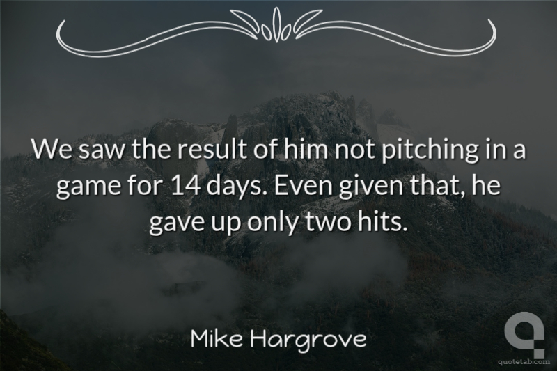 We saw the result of him not pitching in a game for 14 days. Even given that, he gave up only two hits.