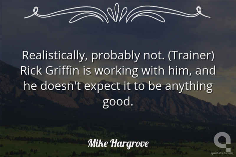 Realistically, probably not. (Trainer) Rick Griffin is working with him, and he doesn't expect it to be anything good.