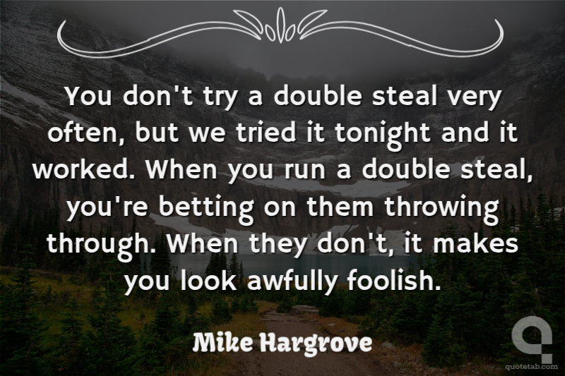 You don't try a double steal very often, but we tried it tonight and it worked. When you run a double steal, you're betting on them throwing through. When they don't, it makes you look awfully foolish.