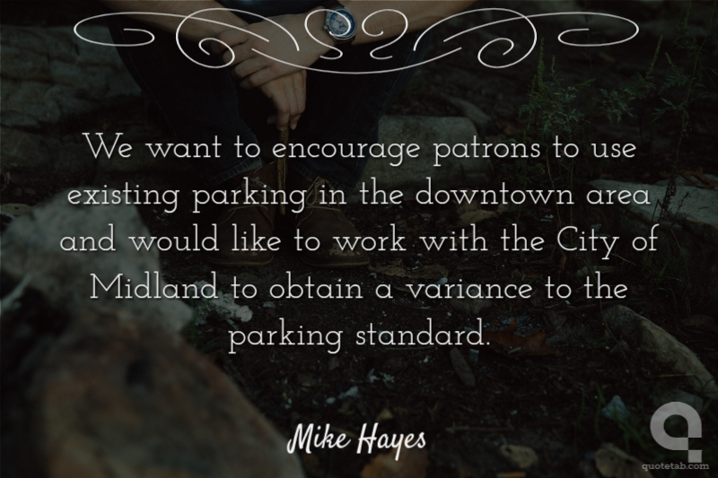 We want to encourage patrons to use existing parking in the downtown area and would like to work with the City of Midland to obtain a variance to the parking standard.
