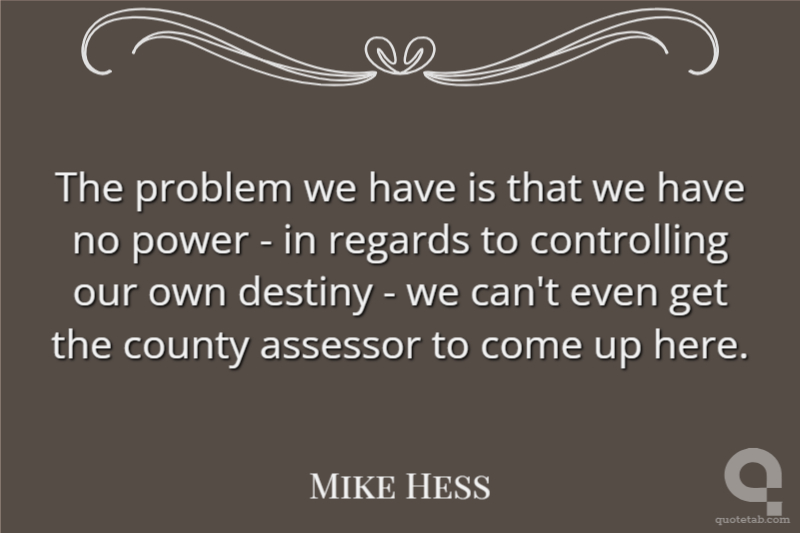 The problem we have is that we have no power - in regards to controlling our own destiny - we can't even get the county assessor to come up here.