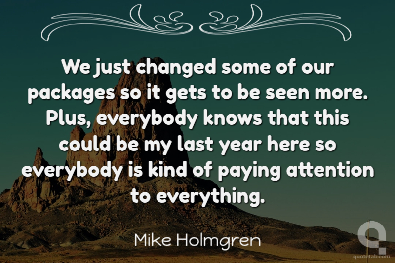 We just changed some of our packages so it gets to be seen more. Plus, everybody knows that this could be my last year here so everybody is kind of paying attention to everything.