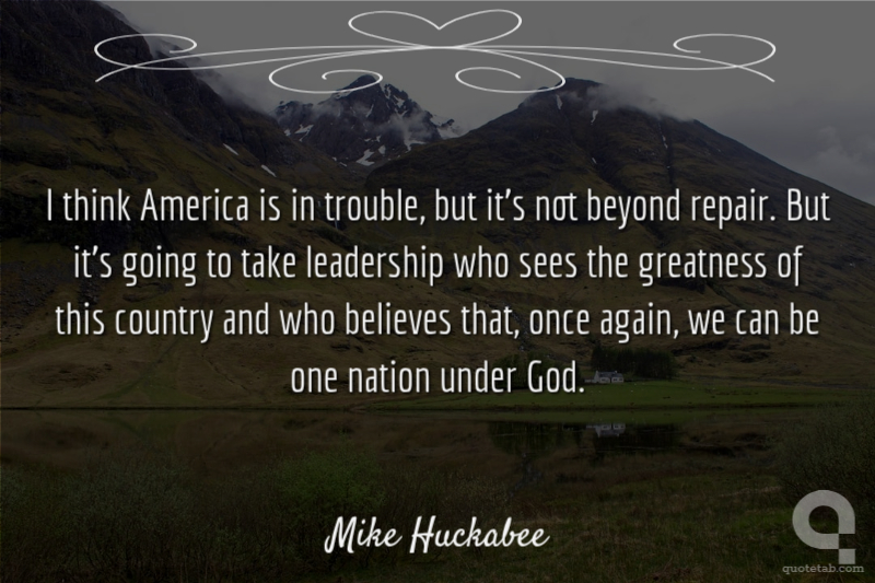 I think America is in trouble, but it's not beyond repair. But it's going to take leadership who sees the greatness of this country and who believes that, once again, we can be one nation under God.
