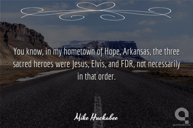 You know, in my hometown of Hope, Arkansas, the three sacred heroes were Jesus, Elvis, and FDR, not necessarily in that order.
