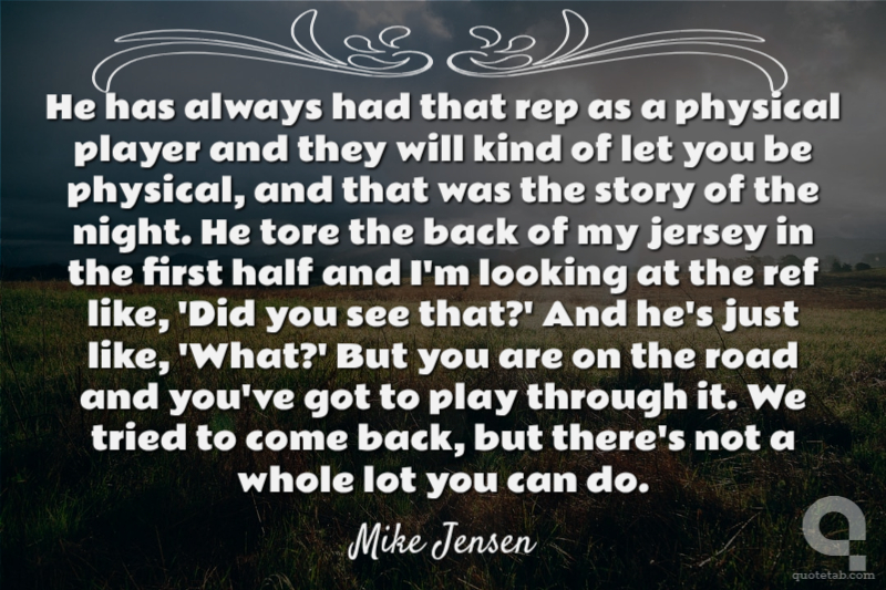 He has always had that rep as a physical player and they will kind of let you be physical, and that was the story of the night. He tore the back of my jersey in the first half and I'm looking at the ref like, 'Did you see that?' And he's just like, 'What?' But you are on the road and you've got to play through it. We tried to come back, but there's not a whole lot you can do.
