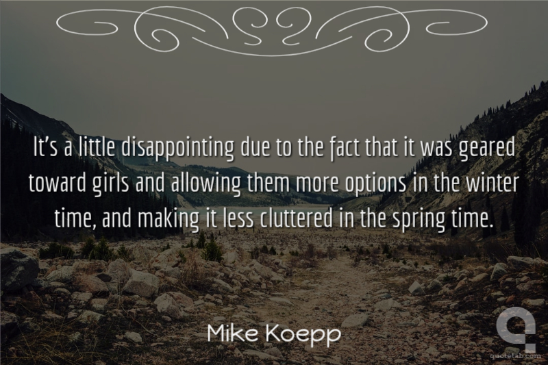 It's a little disappointing due to the fact that it was geared toward girls and allowing them more options in the winter time, and making it less cluttered in the spring time.