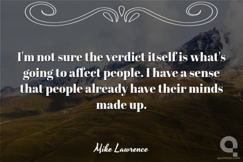 I'm not sure the verdict itself is what's going to affect people. I have a sense that people already have their minds made up.