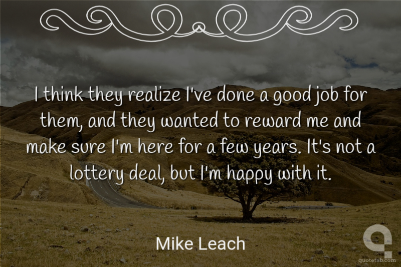I think they realize I've done a good job for them, and they wanted to reward me and make sure I'm here for a few years. It's not a lottery deal, but I'm happy with it.