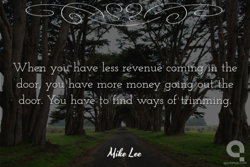 When you have less revenue coming in the door, you have more money going out the door. You have to find ways of trimming.