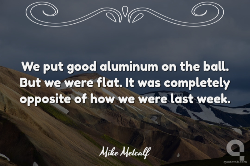 We put good aluminum on the ball. But we were flat. It was completely opposite of how we were last week.