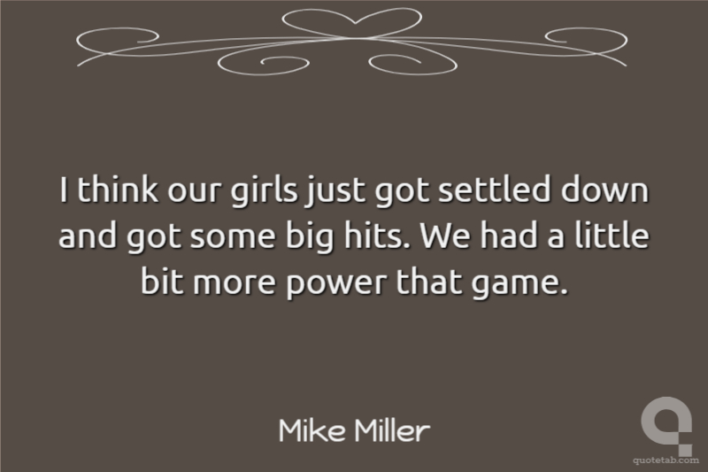 I think our girls just got settled down and got some big hits. We had a little bit more power that game.