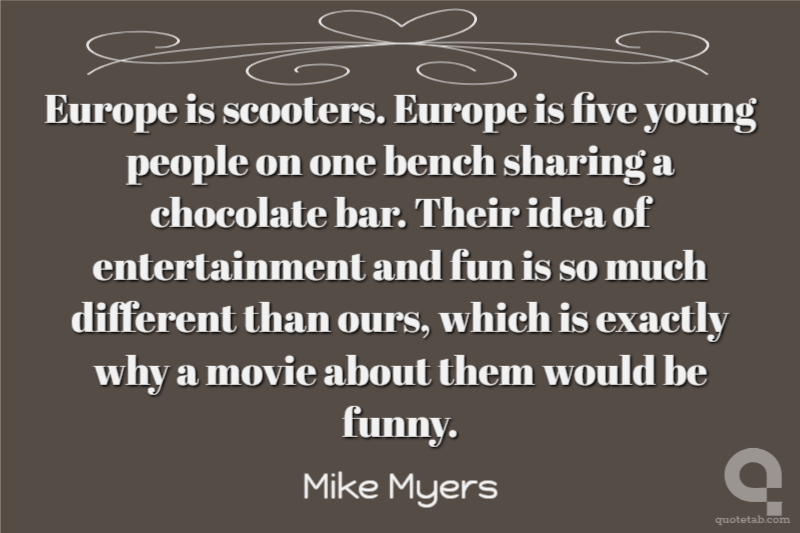 Europe is scooters. Europe is five young people on one bench sharing a chocolate bar. Their idea of entertainment and fun is so much different than ours, which is exactly why a movie about them would be funny.