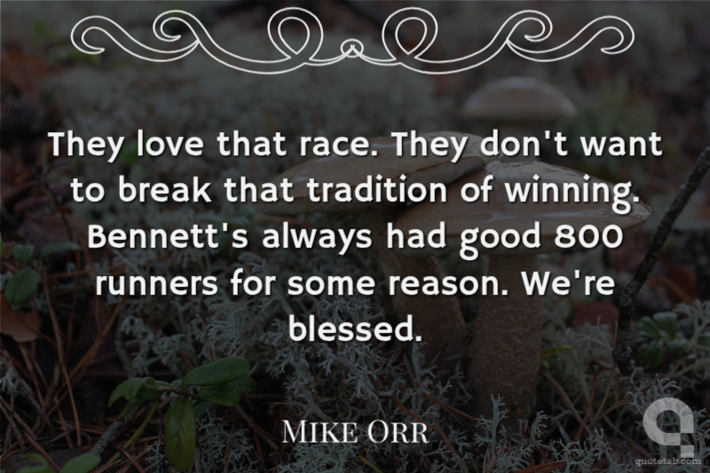 They love that race. They don't want to break that tradition of winning. Bennett's always had good 800 runners for some reason. We're blessed.