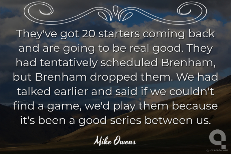 They've got 20 starters coming back and are going to be real good. They had tentatively scheduled Brenham, but Brenham dropped them. We had talked earlier and said if we couldn't find a game, we'd play them because it's been a good series between us.