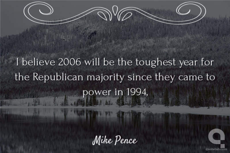 I believe 2006 will be the toughest year for the Republican majority since they came to power in 1994,