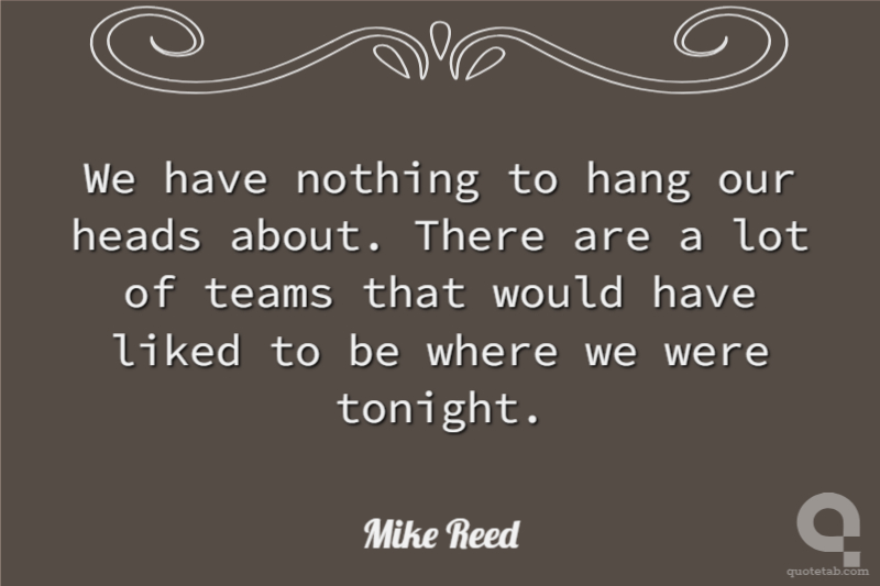 We have nothing to hang our heads about. There are a lot of teams that would have liked to be where we were tonight.