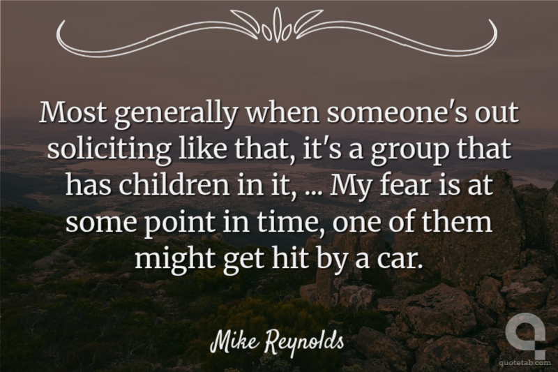 Most generally when someone's out soliciting like that, it's a group that has children in it, ... My fear is at some point in time, one of them might get hit by a car.