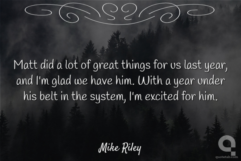 Matt did a lot of great things for us last year, and I'm glad we have him. With a year under his belt in the system, I'm excited for him.