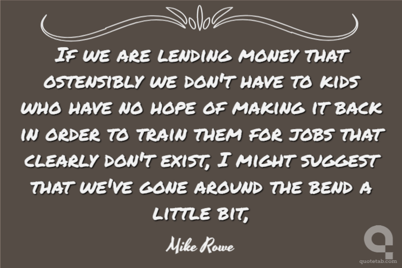 If we are lending money that ostensibly we don't have to kids who have no hope of making it back in order to train them for jobs that clearly don't exist, I might suggest that we've gone around the bend a little bit,