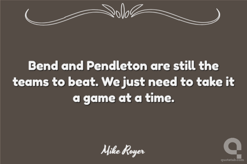 Bend and Pendleton are still the teams to beat. We just need to take it a game at a time.