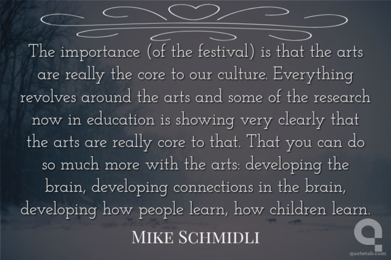 The importance (of the festival) is that the arts are really the core to our culture. Everything revolves around the arts and some of the research now in education is showing very clearly that the arts are really core to that. That you can do so much more with the arts: developing the brain, developing connections in the brain, developing how people learn, how children learn.