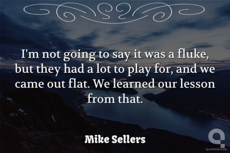 I'm not going to say it was a fluke, but they had a lot to play for, and we came out flat. We learned our lesson from that.