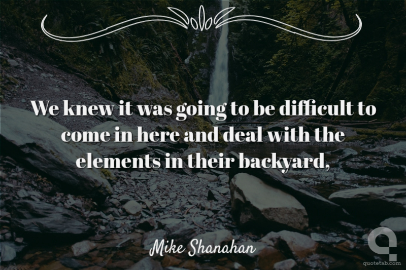 We knew it was going to be difficult to come in here and deal with the elements in their backyard,