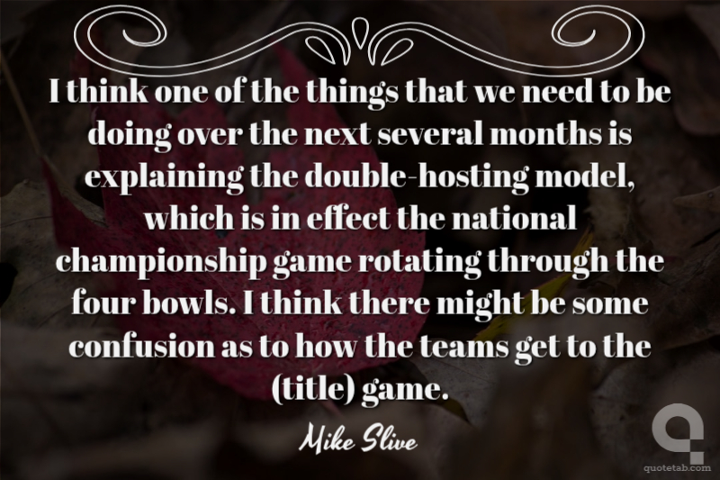 I think one of the things that we need to be doing over the next several months is explaining the double-hosting model, which is in effect the national championship game rotating through the four bowls. I think there might be some confusion as to how the teams get to the (title) game.