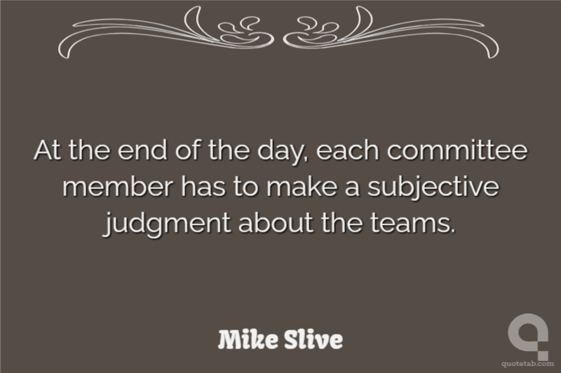 At the end of the day, each committee member has to make a subjective judgment about the teams.