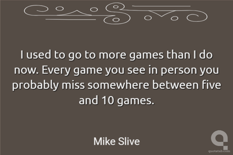 I used to go to more games than I do now. Every game you see in person you probably miss somewhere between five and 10 games.