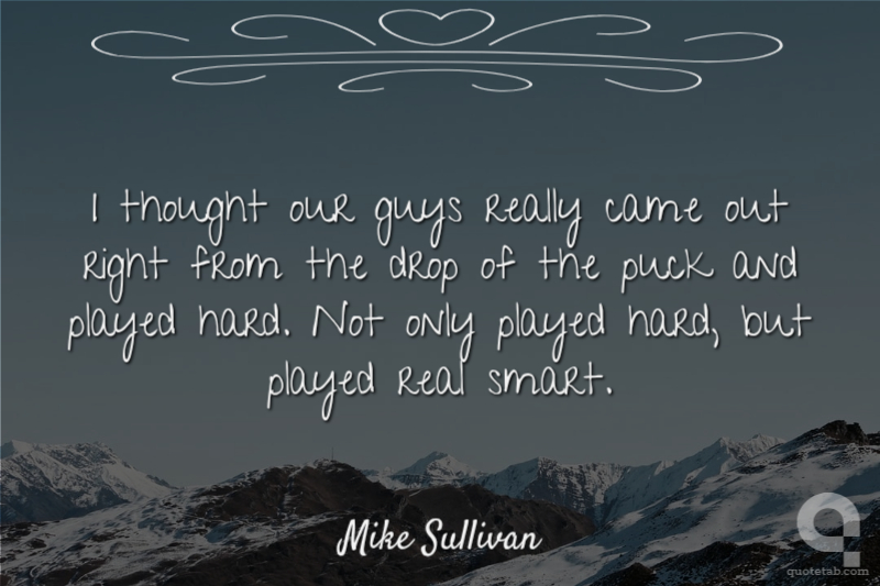 I thought our guys really came out right from the drop of the puck and played hard. Not only played hard, but played real smart.