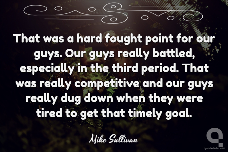 That was a hard fought point for our guys. Our guys really battled, especially in the third period. That was really competitive and our guys really dug down when they were tired to get that timely goal.