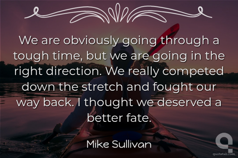 We are obviously going through a tough time, but we are going in the right direction. We really competed down the stretch and fought our way back. I thought we deserved a better fate.