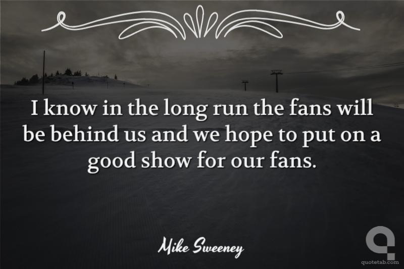 I know in the long run the fans will be behind us and we hope to put on a good show for our fans.