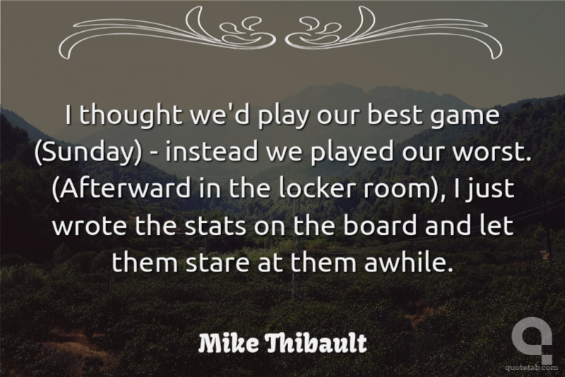 I thought we'd play our best game (Sunday) - instead we played our worst. (Afterward in the locker room), I just wrote the stats on the board and let them stare at them awhile.