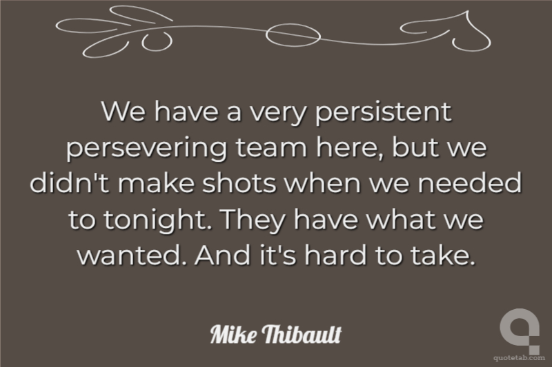 We have a very persistent persevering team here, but we didn't make shots when we needed to tonight. They have what we wanted. And it's hard to take.