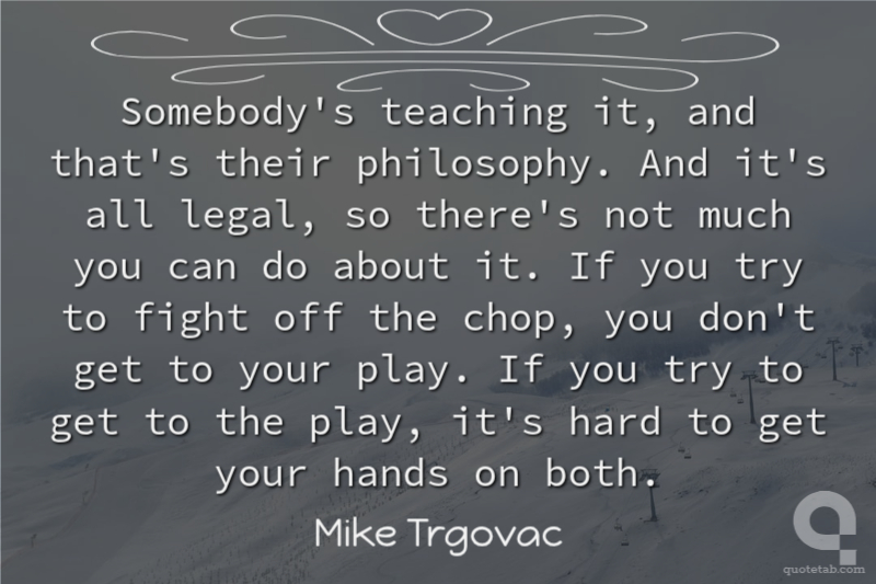 Somebody's teaching it, and that's their philosophy. And it's all legal, so there's not much you can do about it. If you try to fight off the chop, you don't get to your play. If you try to get to the play, it's hard to get your hands on both.