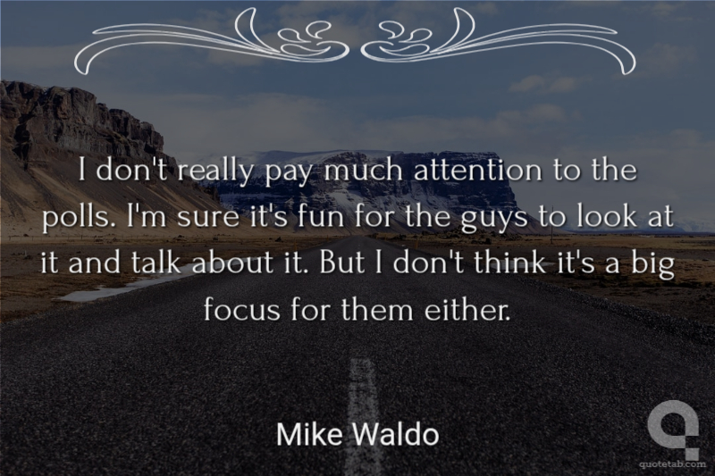 I don't really pay much attention to the polls. I'm sure it's fun for the guys to look at it and talk about it. But I don't think it's a big focus for them either.